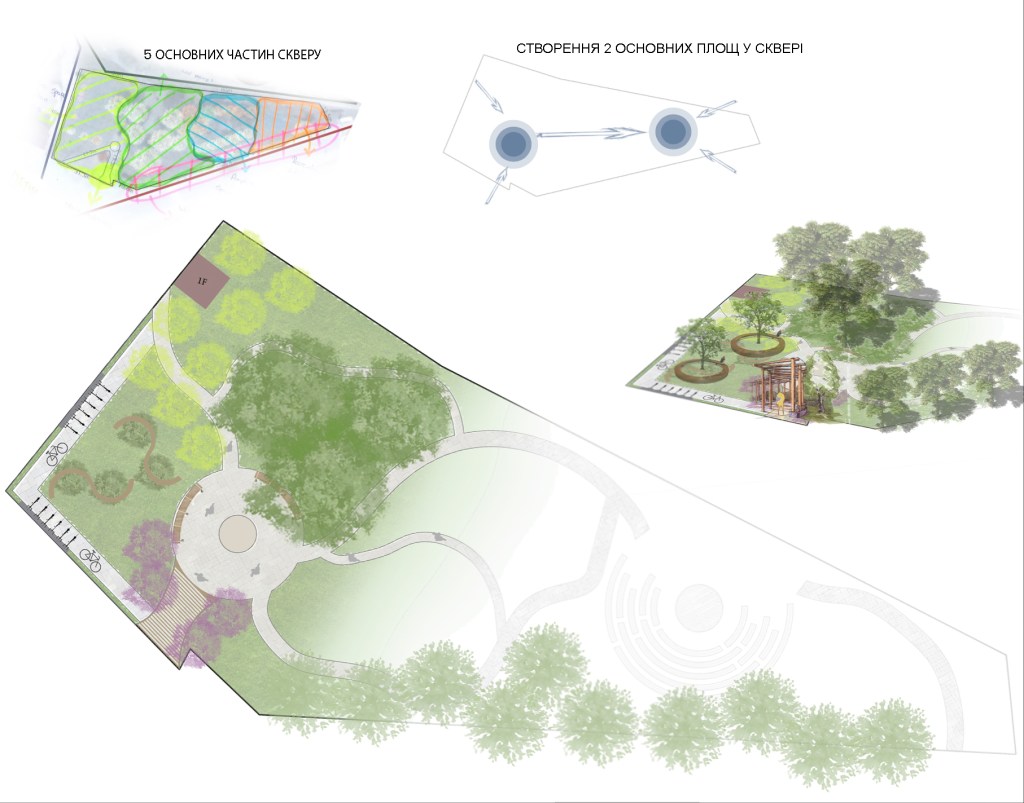 Перша схема того, що можна зробити із наявного скверу: