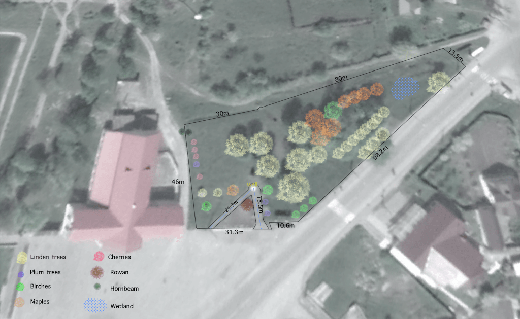 Після цього ми створили схему всіх дерев, кущів та об’єктів, розташованих у тому скверику: