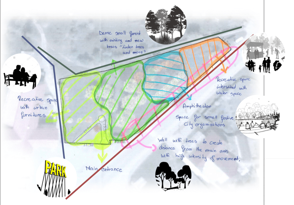 І коли ми вже мали в руках всі фото, схему і розуміли, що потрібно добитися від цього простору, в роботу включилася проектувальниця громадського простору.