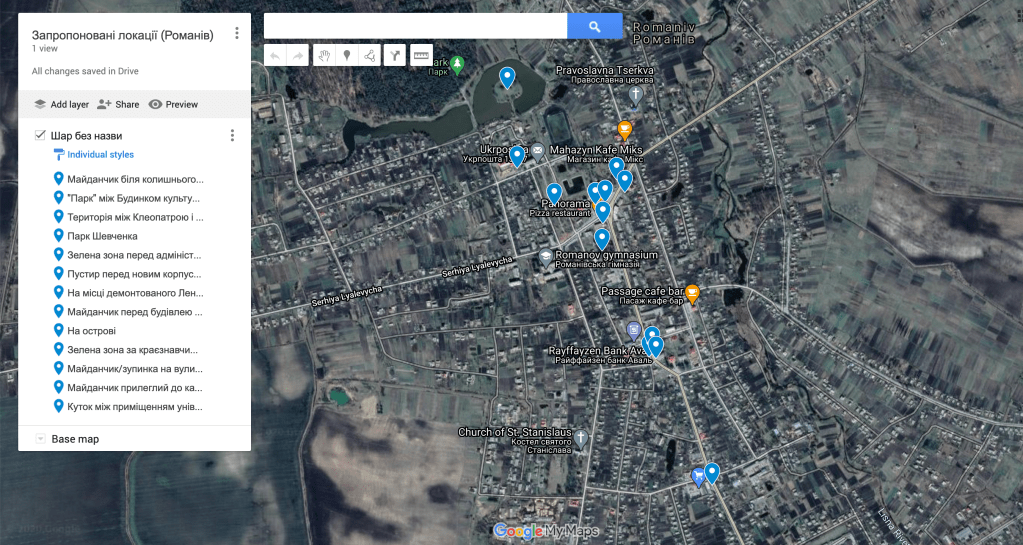 І тут ми розродилися постом на фб, закликаючи всіх пропонувати ідеї, де б ми могли зробити в Романові якийсь класний міні-парк/сквер. В нас було лише 800 гривень, пам’ятаймо.