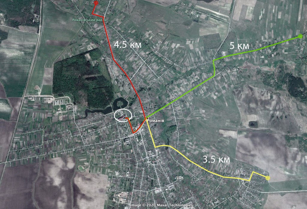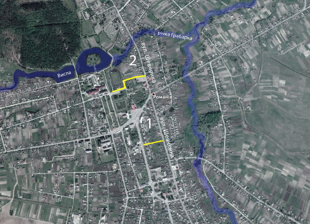 Якщо звести всі маршрути на одній мапі, то ми помітимо, що всі вони зустрінуться в одному місці Романова – перехресті вулиць Шевченка і Графа Ілінського. Або в простонародді – біля хреста.