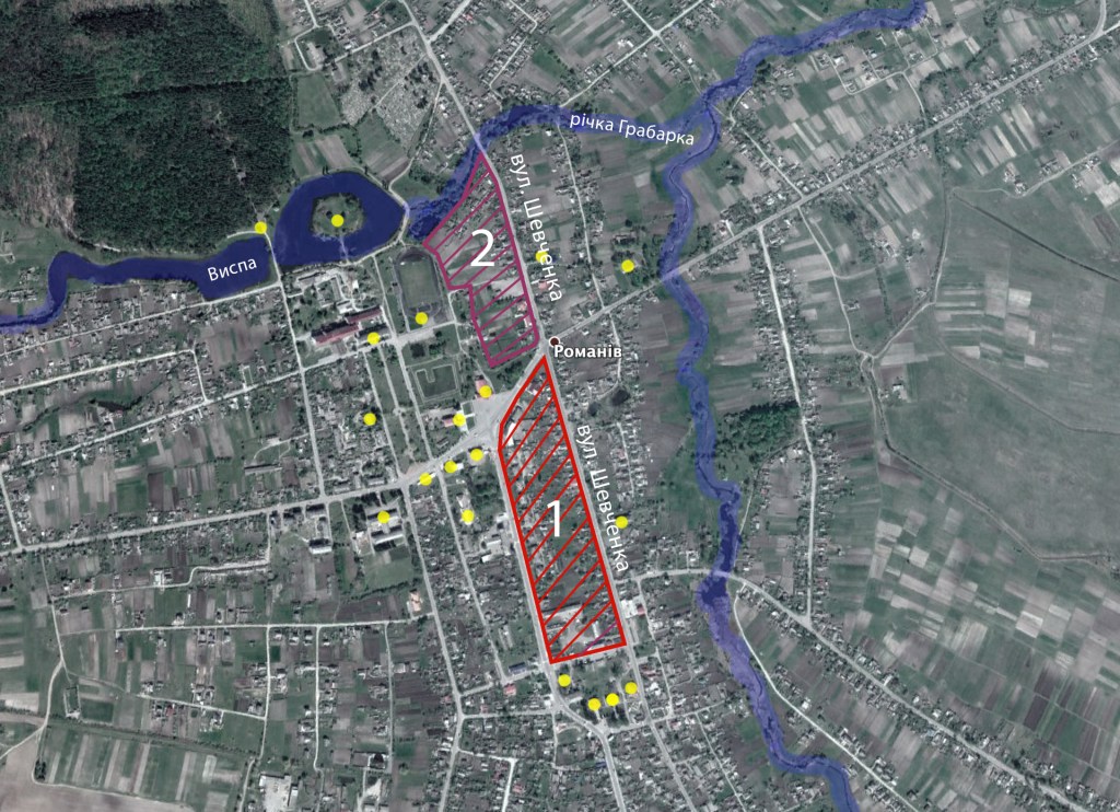 – Шевченка – з півночі майже до південної околиці Романова