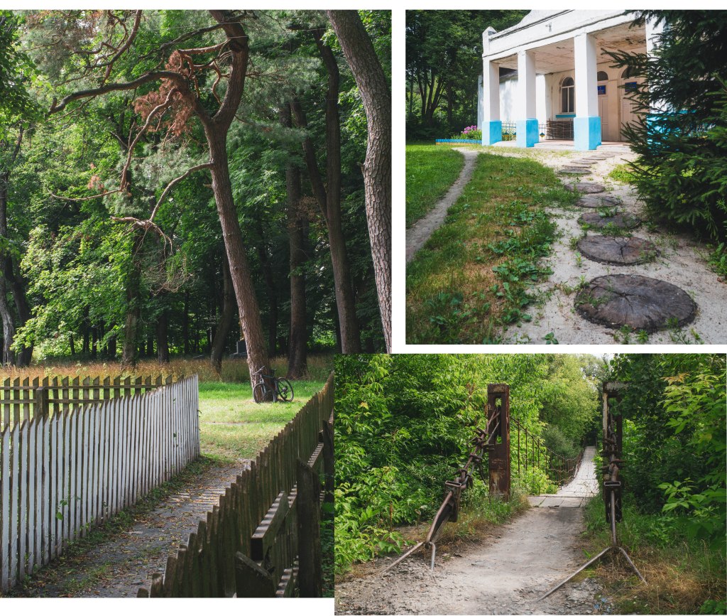 Раніше вона була оточена фантастично пахучим сосновим бором, який обривався над глибоким яром, дном якого тече безіменний струмок. Зараз сосни вирубали, але лишилися яр та альтанка. І на тому дякуємо 🙂